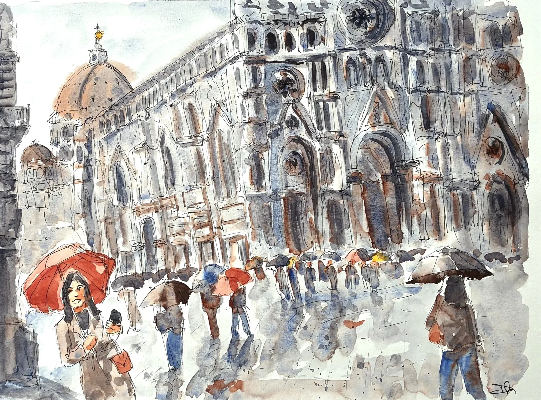 Sketching in pen and watercolour at events, shows, festivals, wedding, sports and in the street.