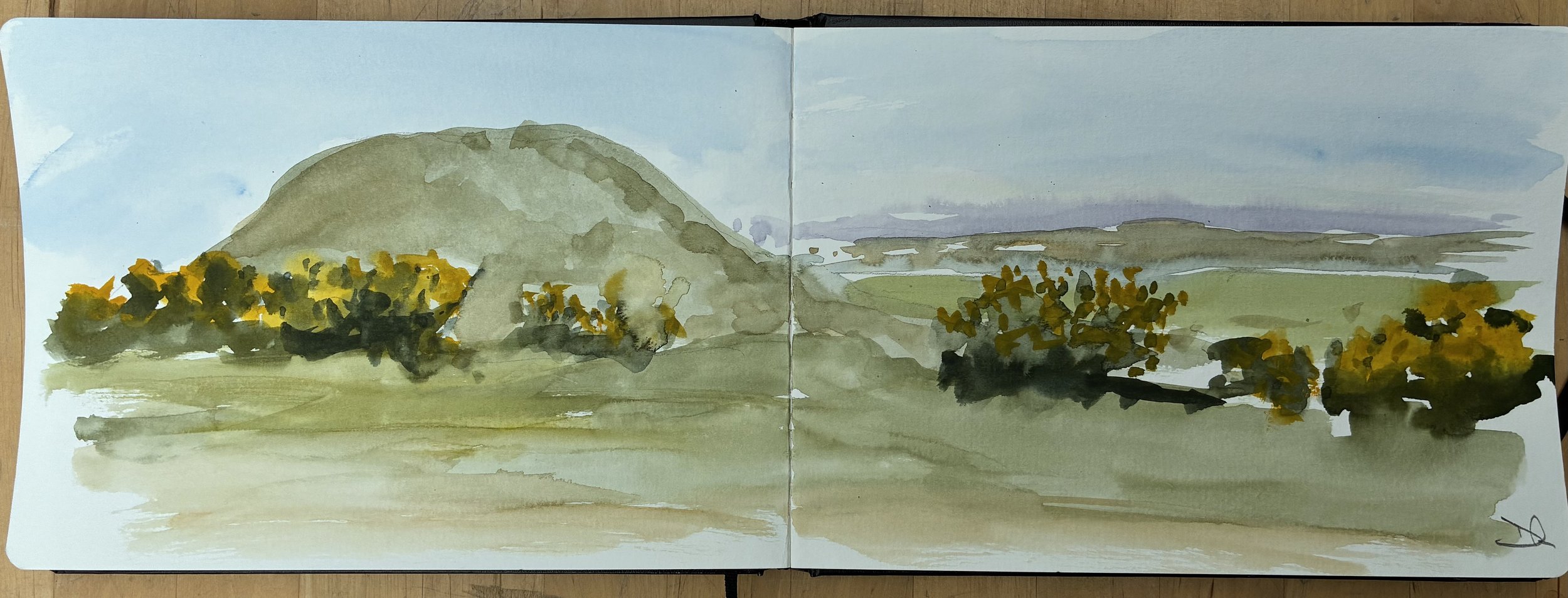 The walk from Corfe Castle to Swanage along the ridgeway is one of my favourites especially when the return journey is on one of Swanage railway’s wonderful steam trains. At around six miles and rising to 600 feet it’s enough to work up an appetite for both me and one of my dogs. I found time to stop for a quick sketch on nine barrow down.